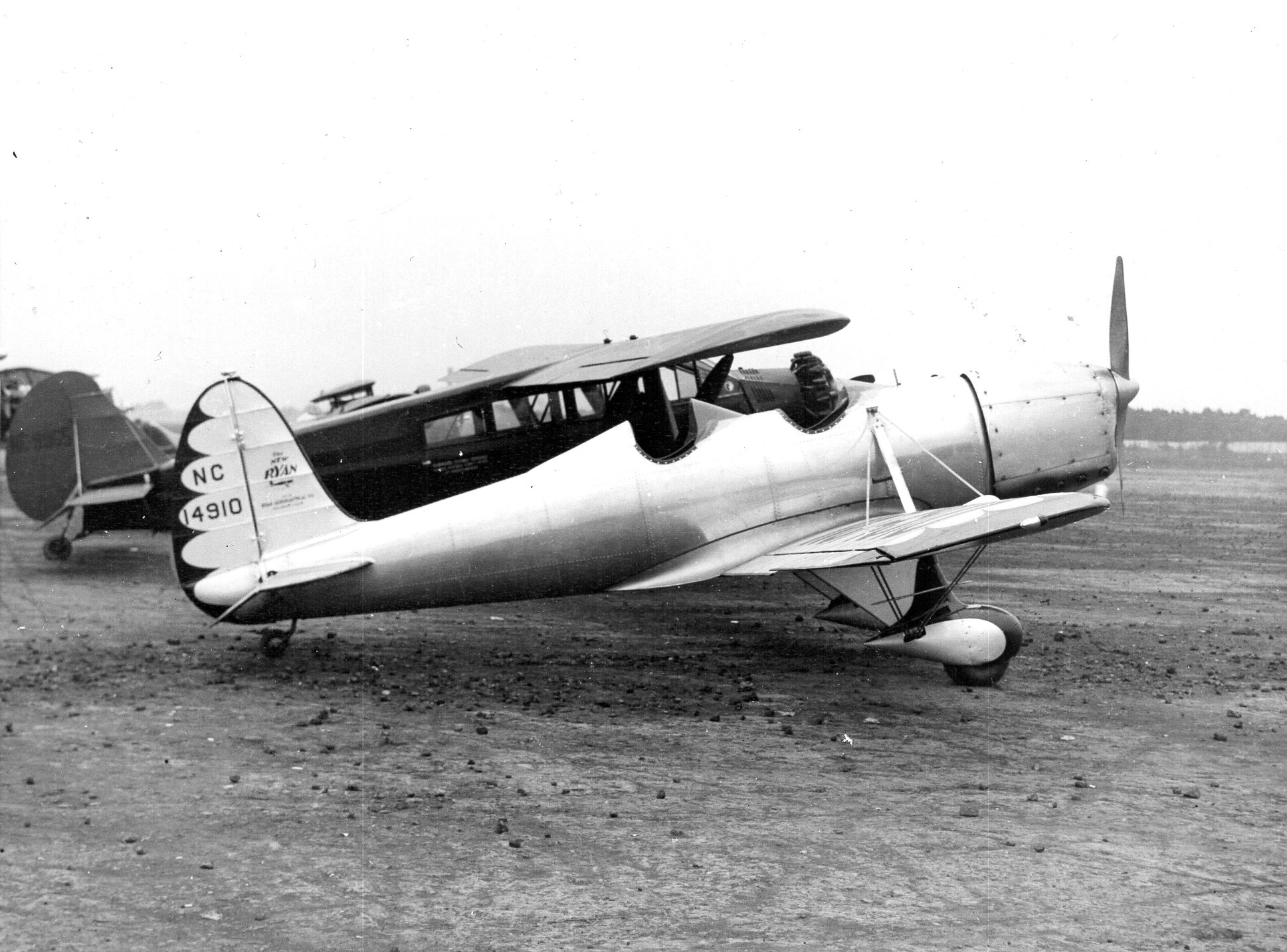 American aviation in the early 1930’s was heavily influenced by the National Air Races. The popular Greve Race ((550 cubic inch maximum) was dominated by aircraft powered with the air cooled Menasco four cylinder Pirate engines. These inline engines permitted superior streamlining, higher speeds and very sleek designs. In 1934, the first year of the Greve Race, Claude Ryan introduced the ST, incorporating a metal monocoque fuselage, wing flaps, and race-inspired streamlining. The aircraft was fully aerobatic and while the wings and tail were fabric covered, more than one press release cited the “little all-metal Ryan plane”. Such was the case when pilot Peter Dana, great grandson of Henry Wadsworth Longfellow, attempted to set the fastest time across the U.S. from Canada to Mexico in his Ryan ST in May, 1936.