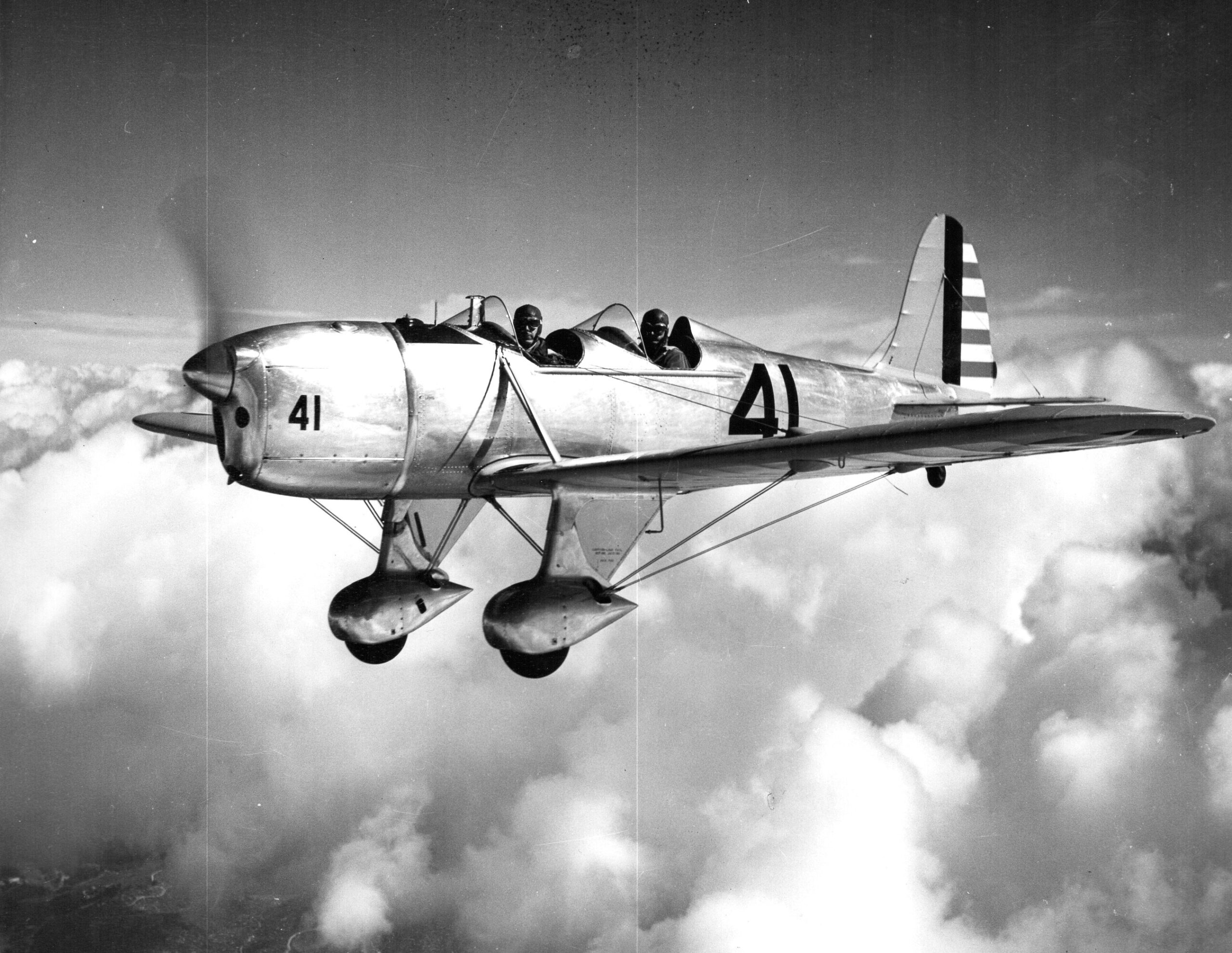 The STM-2, also introduced in 1937, featured wider cockpits to accommodate pilots with parachutes, external fuselage stringers and provisions to mount armament. With installation of a 30 cal machine gun under the engine cowl and the front cockpit covered, the Ryan STM-2 was positioned as an excellent single-place pursuit trainer. Ryan STM2’s were exported in numbers to many foreign air forces including Nationalist China and the Netherlands East Indies.