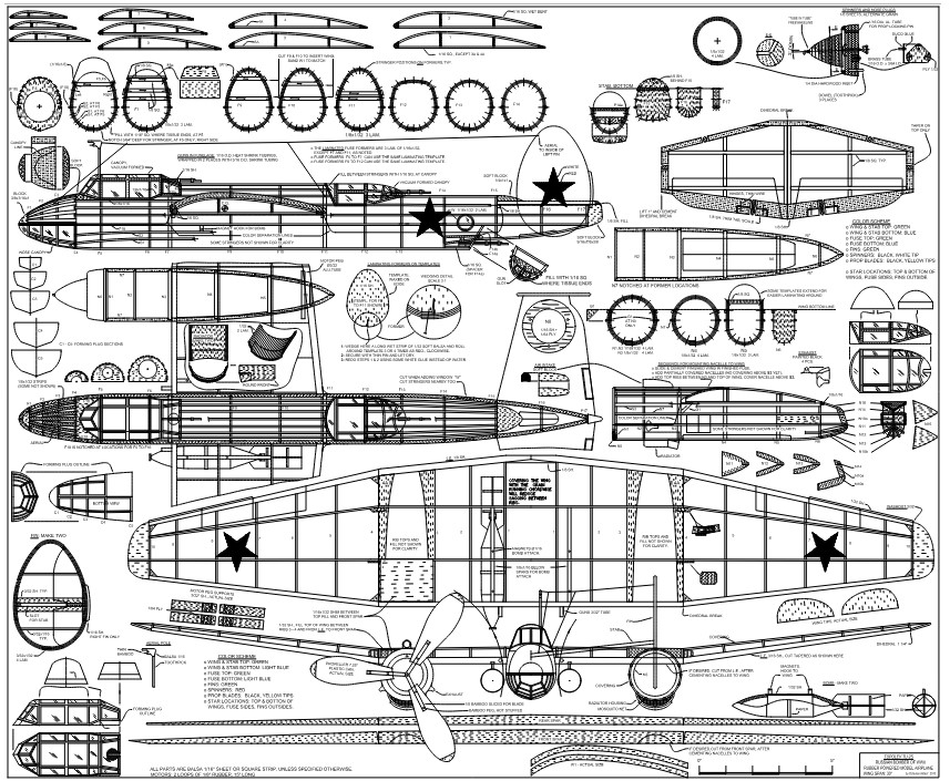 Designed by long time Flying Aces Club (FAC) flyer Octavian Aldea, this black and white plan includes full-sized top, side and front views of all components such that they can be built directly over the plan. Stick and sheet balsa stock dimensions are indicated on the plan and all sheet balsa parts are printed full-size for use as templates in cutting out accurate parts to construct the model framework. This is an Intermediate/Advanced-level Free Flight Flying Scale model to build and fly and can be a top competitor in FAC Scale events.